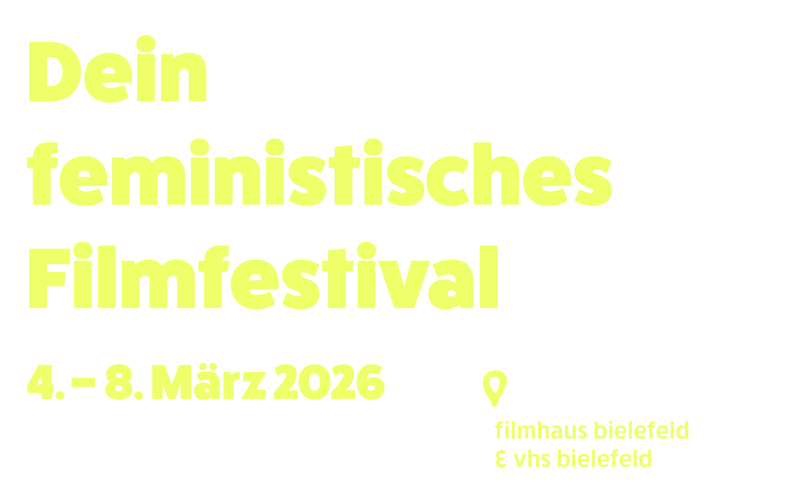 Das Programm gibt Einblicke in das Leben von FLINTA aus der ganzen Welt. In Kooperation mit dem Filmhaus Bielefeld und der VHS Bielefeld bringen die ehrenamtlich aktiven Veranstalter*innen feministische Themen auf die Leinwand.Jedes Jahr rund um den 08. März